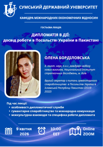 Дипломатія в дії: досвід роботи в Посольстві України в Пакистані Кафедра міжнародних економічних відносин запрошує студентів, викладачів та всіх зацікавлених долучитися до гостьової відкритої лекції,