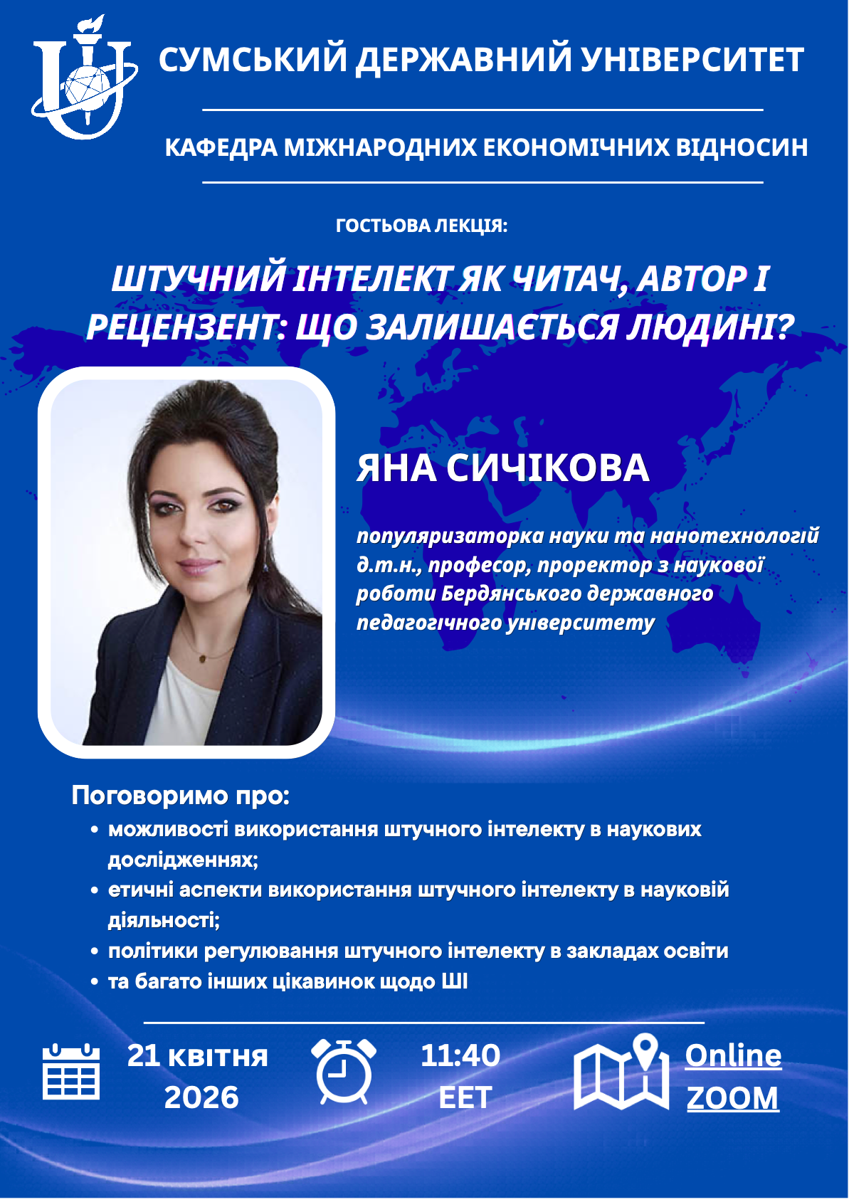 The Department of International Economic Relations invites early-career researchers, students, academic staff, and all interested participants to join a guest open lecture devoted to the practical, ethical, and institutional aspects of using AI in research activities.