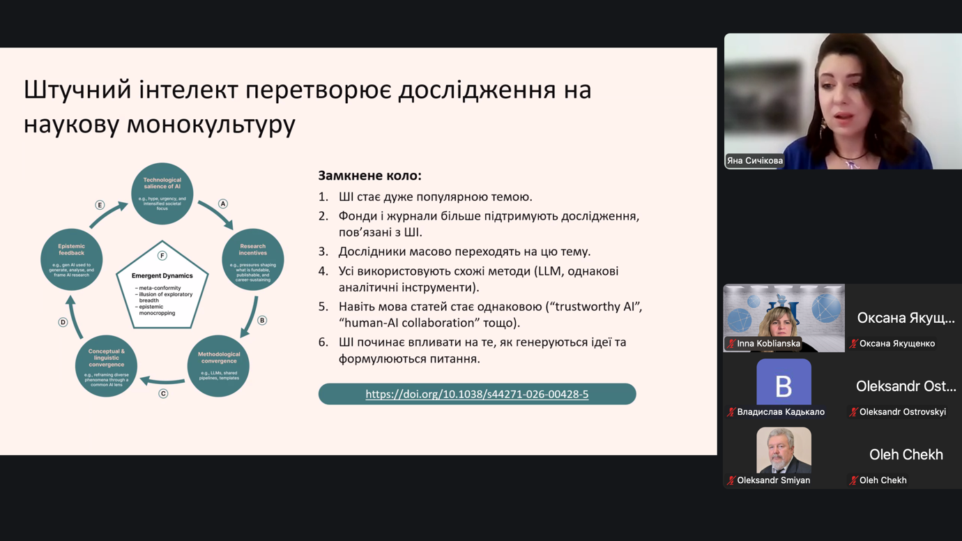 On 21 April 2026, the Department of International Economic Relations at Sumy State University hosted a guest open lecture titled “Artificial Intelligence as a Reader, Author and Reviewer: What Remains for Humans?”, bringing together students, early-career researchers, and academic staff to explore the evolving role of AI in research.
