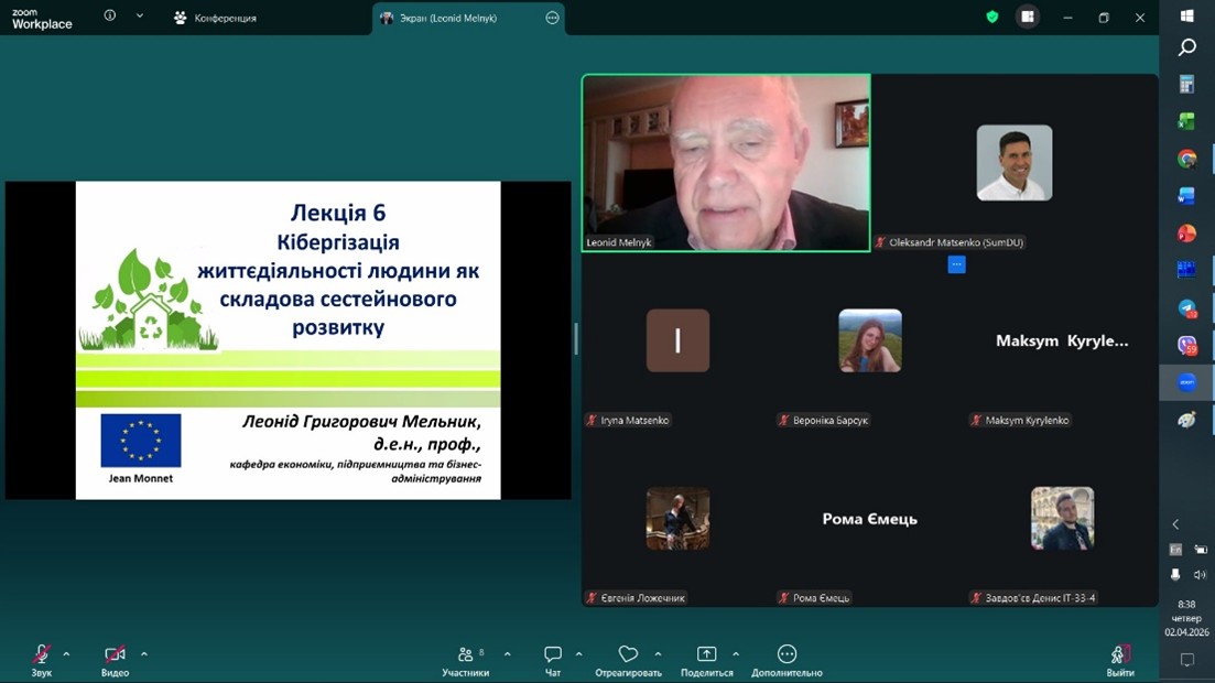 Лекцією «Кібергізація життєдіяльності людини як складова сталого розвитку» д.е.н. Леоніда Мельника, професора кафедри економіки, підприємництва та бізнес-адміністрування (ЕПБА) СумДУ, директора НДІ Економіки розвитку МОН і НАН України, завершився новий курс «Industries 4.0 та 5.0 для сталого розвитку: досвід ЄС та України», для студентів-економістів. Курс завершився практикумом.